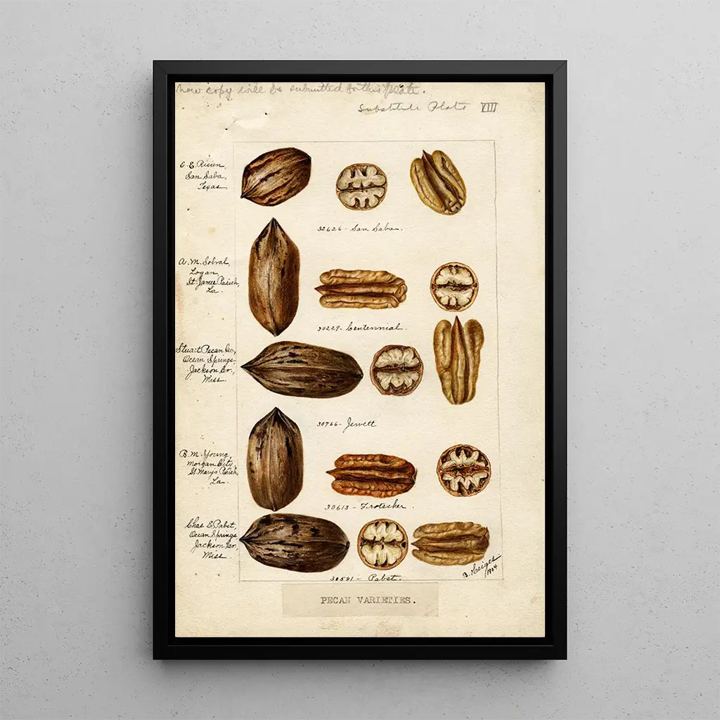 The art print of Carya illinoinensis is a decorative piece that will enhance any space, whether a living room, office, or bedroom. Its printing quality guarantees remarkable fidelity to the colors and details of the original artwork, allowing you to fully enjoy its aesthetic appeal. By incorporating this art print into your decor, you bring a touch of nature and serenity to your interior, while celebrating Bertha Heiges' talent. This canvas is an ideal choice for those who appreciate the beauty of the natural world and wish to include it in their daily environment.
