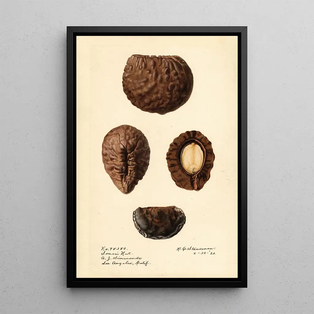 Caryocar nuciferum Souari Nut : a treasure of the Amazon rainforest The art print "Caryocar nuciferum Souari Nut" by Royal Charles Steadman offers a captivating depiction of this iconic fruit, renowned for its richness and rarity. The warm, earthy tones of the print evoke the depths of the Amazon rainforest, while the meticulous details of the fruit capture the very essence of nature. Steadman's technique, blending realism and sensitivity, creates an immersive atmosphere, allowing viewers to feel the texture and warmth of this natural treasure. Every element of the composition seems to pulse with its own life, inviting discovery. Royal Charles Steadman: a pioneer of botanical realism Royal Charles Steadman is celebrated for his role in developing botanical realism in the 19th century, an artistic movement that sought to combine art and science. His passion for nature and his commitment to faithful representation of plant species marked his work. Influenced by the botanical explorations of his time, Steadman highlighted the beauty and complexity of the natural world. His work not only enriched botanical knowledge but also raised public awareness about the importance of preserving our environment. A decorative piece with multiple virtues The art print "Caryocar nuciferum Souari Nut" is a decorative piece that will add an authentic touch to your living space. Whether in a living room, office, or bedroom, this print will captivate attention thanks to its high-quality reproduction and fidelity to the original artwork. Its aesthetic appeal and thematic depth make it an excellent choice for art and nature enthusiasts. By incorporating this piece into your decor, you not only add a unique item but also invite a celebration of the beauty of biodiversity.