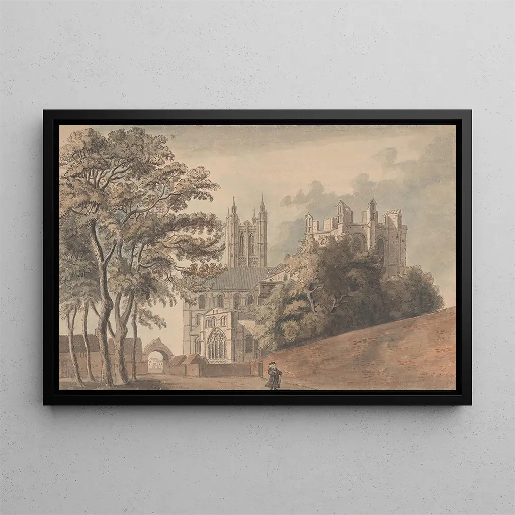 The "Canterbury Cathedral Kent," captured by Captain Francis Grose, is an artwork that evokes the majesty and grandeur of medieval architecture. The intricate details of the façade, with its arches and stained glass windows, are highlighted by rich and deep colors, ranging from soothing blues to dazzling golds. The solemn atmosphere of this scene invites reflection, while natural light accentuates the textures of the ancient stones. This art print is not only a tribute to an iconic monument but also a celebration of England's cultural heritage.