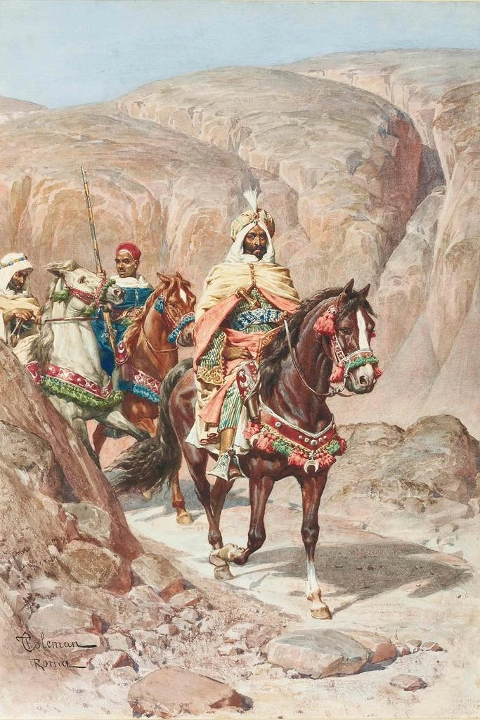 Francesco Coleman, actif au XIXe siècle, est reconnu pour ses représentations saisissantes de la nature, souvent inspirées par les grands maîtres du romantisme. Sa carrière s'étend sur plusieurs décennies, durant lesquelles il a su évoluer tout en restant fidèle à son amour pour les paysages grandioses. Influencé par des artistes tels que Caspar David Friedrich, Coleman a su intégrer des éléments de mystère et de sublime dans ses œuvres. Son travail témoigne d'une époque où l'homme cherchait à se reconnecter avec la nature, une thématique qui résonne encore aujourd'hui. Les "Cavaliers sur un passage rocheux" illustrent parfaitement cette quête d'harmonie entre l'homme et son environnement.