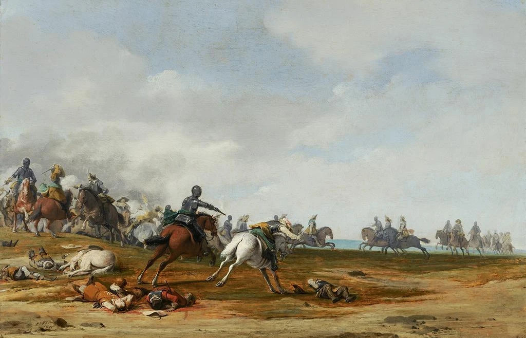 Pieter Post, active in the 17th century, is renowned for his works that blend landscapes and battle scenes. Influenced by Flemish masters, he developed a unique style that combines precision and emotion. His paintings, often commissioned by nobles, reflect the importance of military events of his time. Post was able to capture the spirit of his era, where war and the glory of cavalry were central themes. His artistic legacy endures, and "Engagement of Cavalry" remains an emblematic example of his talent for depicting human bravery amidst turmoil.