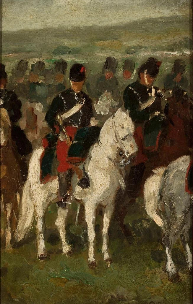 Piotr Michałowski, an emblematic figure of the 19th century in Poland, is renowned for his works celebrating military heroism and Polish culture. His style, rooted in realism, draws inspiration from historical events and military traditions of his country. Michałowski captured the essence of military life, while highlighting the human emotions that accompany it. "Cavalerie" is a striking example of his talent, illustrating not only the bravery of soldiers but also the artist's passion for his cultural and historical heritage.