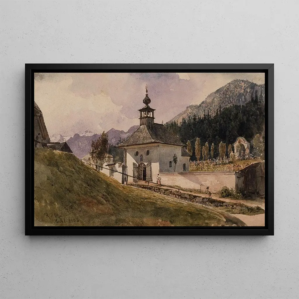 Rudolf von Alt, an iconic figure of the 19th century, is renowned for his landscapes and urban scenes, particularly in Austria. Influenced by Romanticism, he captured the essence of his era through his works. His style, characterized by meticulous attention to detail and a subtle use of light, has left a mark on Austrian art history. Alt was also a member of the Vienna Academy of Fine Arts, contributing to the rise of watercolor as an artistic technique. "Cemetery in Ischl" showcases his talent and dedication to faithfully representing nature and architecture.