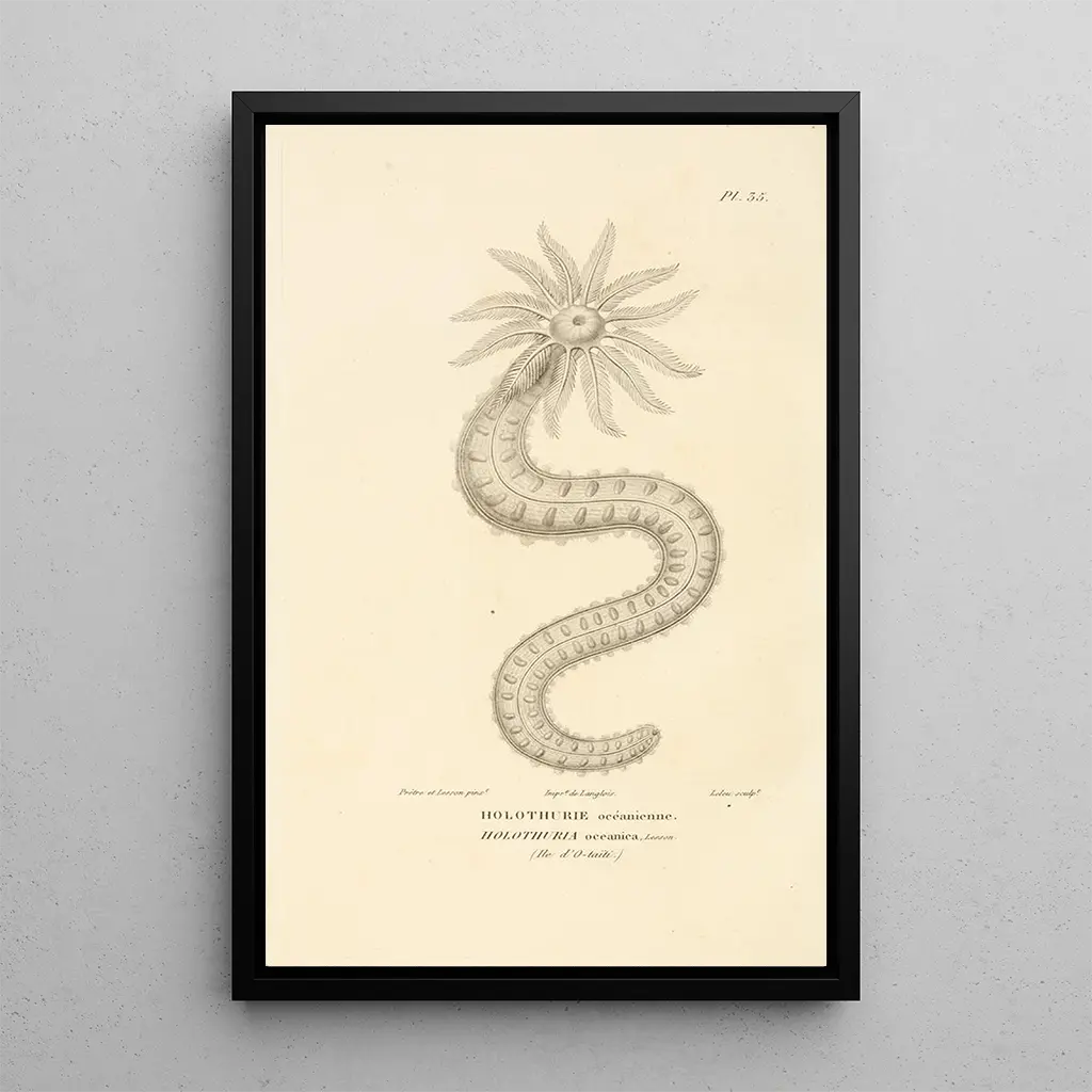 The art print of the Centurie zoologique Pl35 reveals a vibrant palette of colors and delicate shapes, illustrating the richness of biodiversity. Each creature is depicted with meticulous care, offering a vision that is both artistic and scientific of wildlife. The atmosphere conveyed by this piece is both soothing and stimulating, inviting attentive contemplation. The engraving technique, combined with a keen sense of detail, brings these animals to life, making this art print particularly captivating.