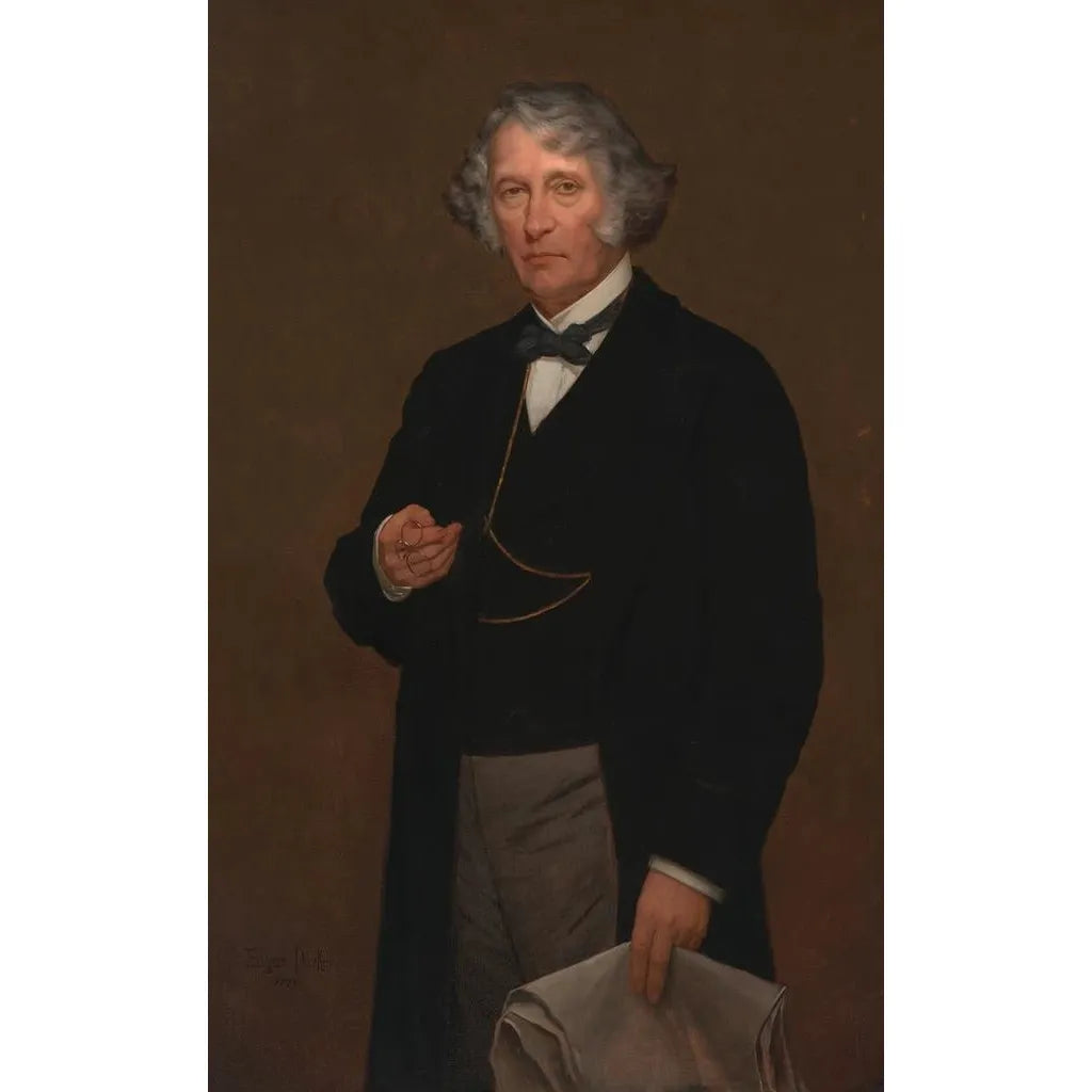 In this striking artwork, Edgar Parker presents us with Charles Sumner, a man whose intense and determined gaze evokes a deep commitment to his convictions. The painting stands out with a rich color palette, where the dark tones of the suit contrast with the brightness of the background. Parker's technique, blending realism and impressionism, captures not only Sumner's physical features but also his charismatic aura. The atmosphere conveyed by this canvas is both serious and inspiring, reflecting this man's fight for justice and equality.