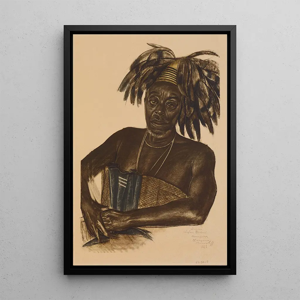 Chef Boemi Avungur Niangara Haut Ouelle : a portrait of dignity The art print "Chef Boemi Avungur Niangara Haut Ouelle" by Alexandre Iacovleff depicts a charismatic figure, symbol of African culture and traditions. The rich, earthy colors, combined with touches of blue and red, emphasize the strength and dignity of the chief. The artist's technique, using bold and expressive brushstrokes, gives the work emotional depth and intensity that captivate the viewer. This art print is not just a simple representation; it tells a story, that of a leader and his people, inviting reflection on cultural identity. Alexandre Iacovleff: a journey into the heart of cultures Alexandre Iacovleff, a Russian-born painter and illustrator, dedicated part of his career to exploring African and Asian cultures. Active in the early 20th century, he captured the essence of these civilizations through his art, influenced by his travels and encounters. His style, blending realism and expressionism, pays homage to the beauty and richness of traditions. "Chef Boemi Avungur Niangara Haut Ouelle" is a striking example of his commitment to representing often overlooked subjects, while offering a unique perspective on human dignity. A decorative art print with multiple virtues The reproduction of "Chef Boemi Avungur Niangara Haut Ouelle" is a centerpiece that will enhance your interior decor. Whether in a living room, office, or bedroom, this art print adds a touch of exoticism and authenticity. Its printing quality guarantees fidelity to the original artwork, allowing you to feel the full power of the image. By integrating this canvas into your space, you create an inspiring environment, while celebrating cultural diversity and Iacovleff's art, which invites discovery and exchange.