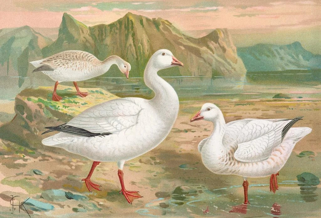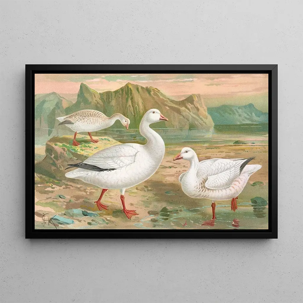 Johann Friedrich Naumann, a 19th-century naturalist and ornithologist, marked his era with contributions to biology and art. Influenced by the scientific discoveries of his time, he skillfully combined scientific rigor with artistic sensitivity. His works, often inspired by fauna and flora, testify to a time when the exploration of unknown territories was at its peak. "Chen hyperboréen" fits into this context, illustrating not only the beauty of Nordic landscapes but also the importance of research on fragile ecosystems.