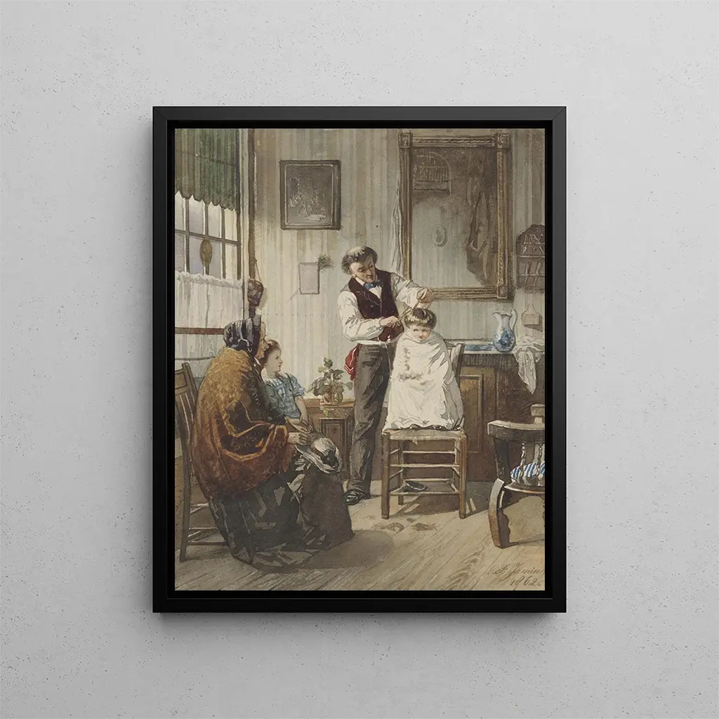 In the vast universe of art, some works manage to capture the very essence of childhood while revealing moments of life filled with tenderness and simplicity. "Child at the Hairdresser" by Diederik Franciscus Jamin is one of those creations that transcend time. This piece, both delicate and evocative, immerses us in a suspended moment where childhood innocence blends with everyday artistry. Through this representation, Jamin invites us to observe not only the subject but also the atmosphere surrounding it, thus revealing an emotional depth that resonates with anyone who has known the simple pleasures of childhood. Style and uniqueness of the work Diederik Franciscus Jamin's style is distinguished by his ability to combine realism and impressionism. In "Child at the Hairdresser," each brushstroke seems carefully thought out to depict the textures and lights that envelop the scene. The colors, both vivid and nuanced, breathe a particular life into the painting, while the carefully balanced composition guides the viewer’s eye across the artwork. The child, at the center of the canvas, is portrayed with touching expressiveness, with delicate features and a curious gaze capturing the moment with rare intensity. The background, subtly blurred, serves to emphasize the presence of the child while suggesting an outside world full of promises and adventures. Thus, Jamin manages to create an intimate atmosphere, inviting the viewer to immerse themselves in a moment of softness and contemplation. The artist and his influence Diederik Franciscus Jamin, a Dutch artist of the 19th century, knew how to mark his era with a unique style that combines tradition and modernity. Trained in the art schools of his time, he was influenced by masters such as Rembrandt and Vermeer, while developing a personal approach that is entirely his own. His ability to capture moments of daily life, often imbued with a certain melancholy, earned him growing recognition within the artistic community.