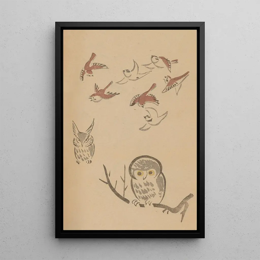 The art print of Choju ryakugashiki Pl25, a captivating work by Masayoshi Kitao, transports us to a world where fauna is depicted with unparalleled delicacy. The pastel colors, blending soft shades of blue and pink, create a calming and dreamlike atmosphere. The ukiyo-e technique, characteristic of Japanese art, allows for each detail to be rendered with remarkable precision, making every element a subject of admiration. In this canvas, the animals seem almost to dance, embodying the ephemeral beauty of nature, and inviting the viewer to a serene contemplation.