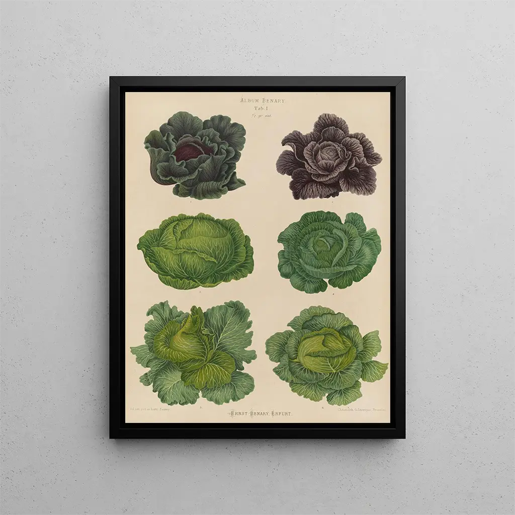 Ernst Benary's style is characterized by impressive realism, where each leaf, each vein is rendered with a meticulousness bordering on obsession. The "Choux" art print is a perfect example of this approach, where the artist manages to capture not only the external appearance of the cabbages but also their essence. The vibrant colors and subtly worked shadows give the piece a depth that brings the composition to life. Benary does not merely reproduce nature; he interprets it, endowing it with an almost poetic dimension. This ability to marry scientific precision with artistic sensitivity makes him an essential figure in the field of botanical art.