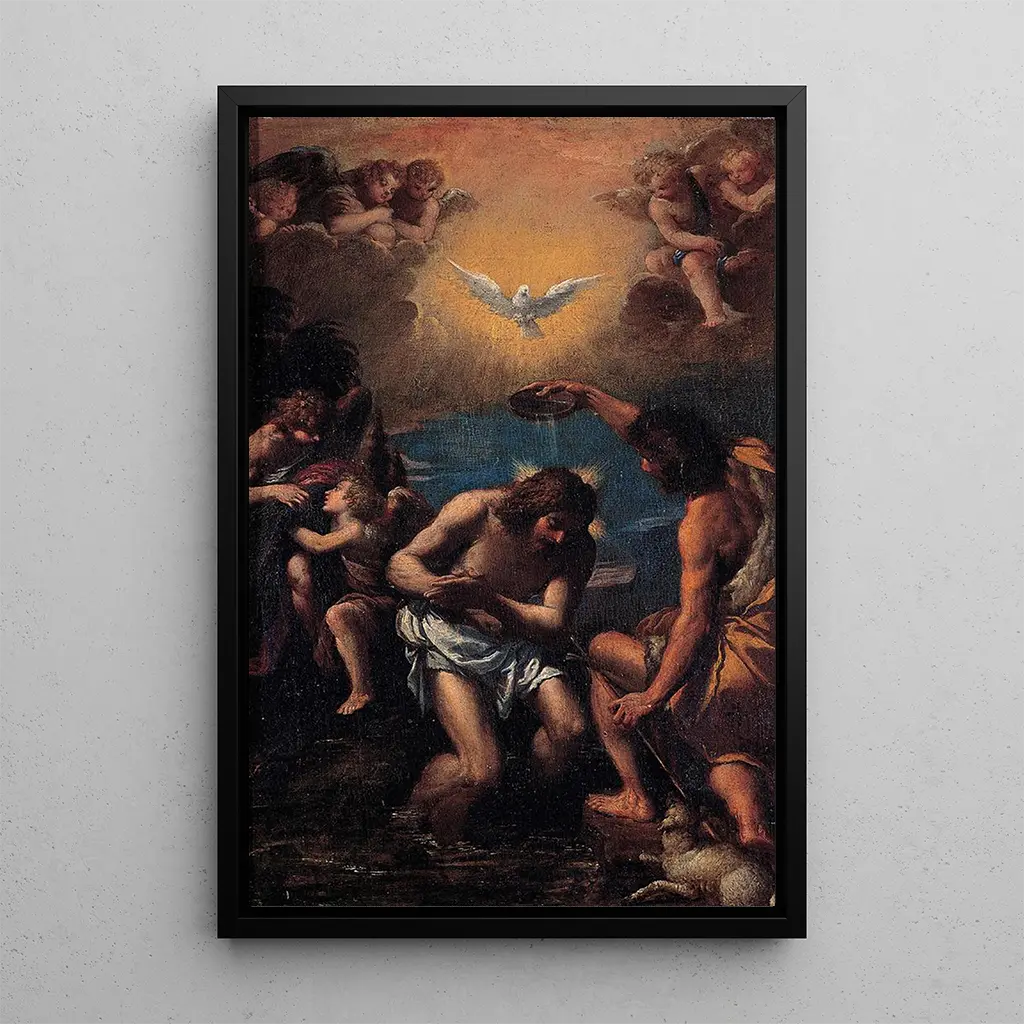 Baptism of Christ: a sacred scene imbued with serenity The art print "Baptism of Christ" by Scarsellino evokes an atmosphere of peace and spirituality. The soft colors, dominated by shades of blue and green, create a visual harmony that invites contemplation. The divine light appears to focus on the central figure of Christ, while the surrounding characters, though secondary, add narrative depth to the scene. Scarsellino's technique, blending realism with stylistic elements of the Renaissance, gives this work an almost ethereal quality, capturing a moment of spiritual transition. Scarsellino: a master of the Italian Renaissance Scarsellino, whose real name is Giovanni Battista Scarsella, was a painter of the Italian Renaissance, primarily active in Bologna. Influenced by the great masters of his time, he developed a unique style that combines fine detail with poignant expressiveness. His works are often characterized by a pursuit of light and shadow, allowing him to bring his subjects to life. The "Baptism of Christ" is emblematic of his approach, illustrating both his technical talent and his ability to convey deep emotions. This art print is part of a rich artistic tradition where spirituality and humanity meet. A decorative acquisition with multiple assets The reproduction of the "Baptism of Christ" is a decorative piece that will enhance any interior, whether it is a living room, office, or bedroom. Its quality of reproduction guarantees fidelity to the original details, allowing you to enjoy the work in all its splendor. The aesthetic appeal of this canvas lies not only in its visual beauty but also in the spiritual message it conveys. Hanging this art print at home is an invitation to bring a part of art history and serenity into your living space.
