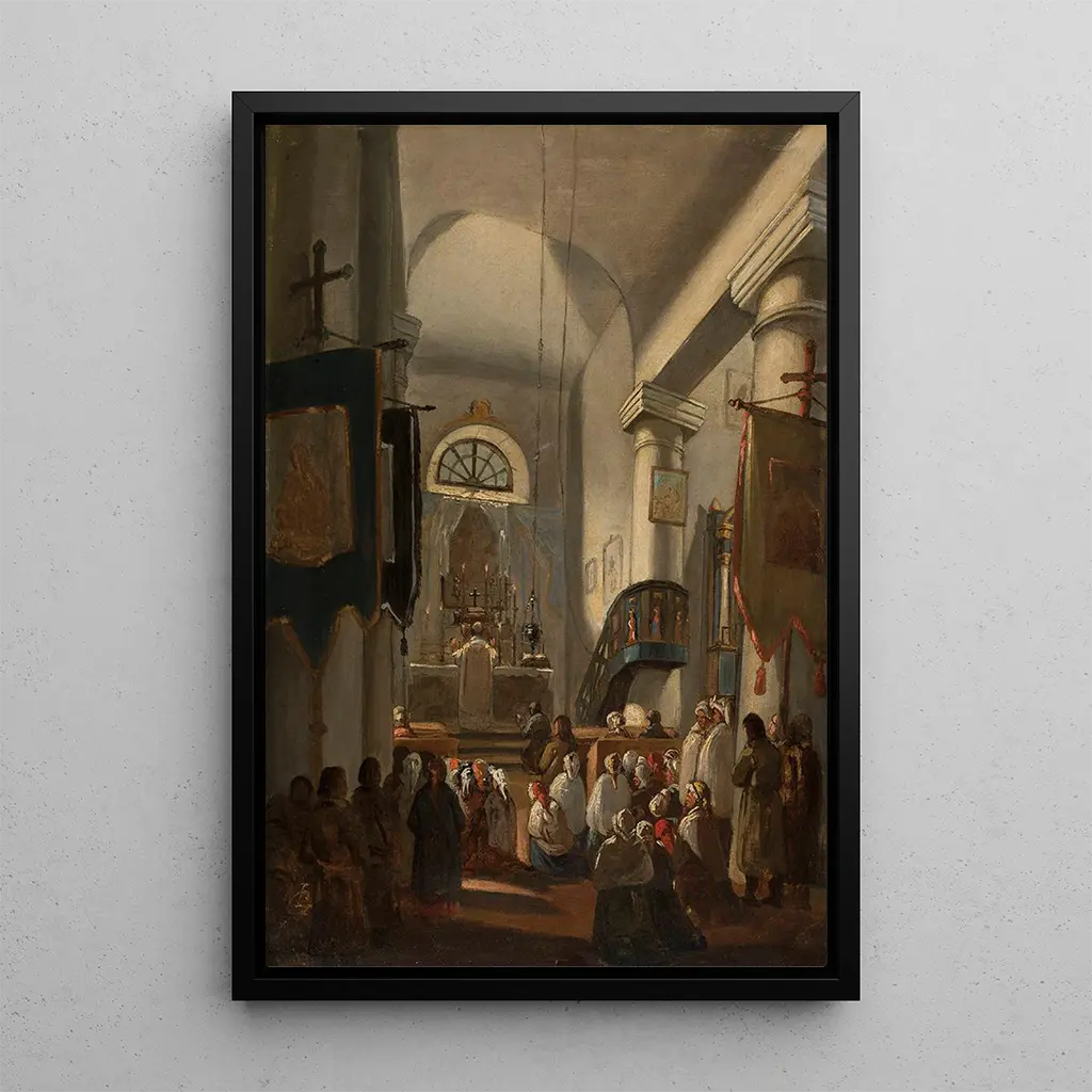 Interior of a church with figures: a vibrant scene of devotion In this art print of Interior of a church with figures, Ignacy Gierdziejewski immerses us in a spiritual atmosphere. The warm colors and play of light create an almost mystical ambiance, where each figure appears absorbed in prayer. The composition, rich in detail, draws the eye to the architectural elements of the church while highlighting the expressions of the human figures. This painting evokes a communion between the sacred and the profane, inviting the viewer to feel the depth of faith and inner life. Ignacy Gierdziejewski: a witness to Polish life in the 20th century Polish artist active in the early 20th century, Ignacy Gierdziejewski is known for his works that capture the essence of daily life and traditions of his country. Influenced by the realist movement, he strives to depict authentic scenes, often imbued with spirituality. Gierdziejewski managed to navigate between different artistic influences while remaining faithful to his cultural heritage. His work, though less known than that of some contemporaries, remains a valuable testimony of the era, reflecting the struggles and hopes of a nation in full transformation. A decorative acquisition with multiple assets The art print of Interior of a church with figures is an ideal decorative piece to enrich your interior, whether in a living room, office, or bedroom. Its print quality and fidelity to the original details make it an attractive choice for art enthusiasts. By integrating this art print into your decor, you bring a touch of elegance and spirituality to your space. This piece, a true window into a bygone era, will inspire admiration from your guests and create a calming atmosphere.
