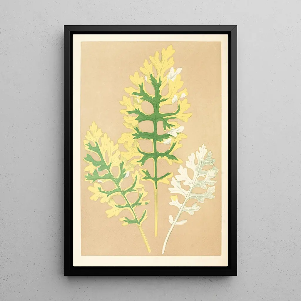 Cineraria Maritima Fairbairnianum: a burst of light on the art print The art print of Cineraria Maritima Fairbairnianum, created by Edward Joseph Lowe, reveals a radiant and luminous beauty. The shades of silver gray and tender green intertwine harmoniously, creating a visually captivating composition. The artist's technique, which combines precision and delicacy, allows you to feel the texture of the leaves and the lightness of the flowers. This work, imbued with poetry, evokes a secret garden where every detail is carefully observed and highlighted. The canvas invites a sensory escape, where nature expresses itself in all its splendor. Edward Joseph Lowe: a master of botanical art print Edward Joseph Lowe, a 19th-century botanical painter, skillfully blended art and science. His work is set in a time when the discovery of exotic plants fascinated the entire world. Influenced by naturalist movements, he dedicated his career to representing flora with unmatched accuracy. His works are not only artistic testimonies but also important contributions to botanical knowledge. Lowe thus left a lasting legacy, inspiring many artists and scientists to explore the beauty of the plant world. A decorative acquisition with multiple assets The art print of Cineraria Maritima Fairbairnianum is a decorative choice that will enhance any space. Whether in an office, a living room, or a bedroom, this canvas adds a touch of freshness and sophistication. Its reproduction quality ensures remarkable fidelity to the details of the original work, allowing you to appreciate its brilliance daily. By integrating this piece into your interior, you create a serene and welcoming atmosphere, while celebrating the beauty of nature. This canvas is much more than a simple decorative object; it is a true art piece that enriches your living space.
