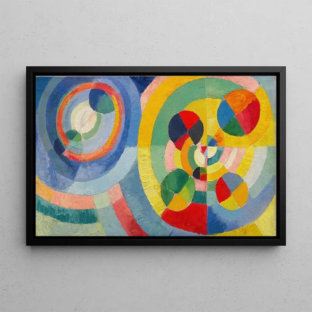 Circular Forms: An Exploration of Movement and Color The art print of "Circular Forms" by Robert Delaunay is a true celebration of visual dynamism. The colorful circles intertwine and overlap, creating a sensation of perpetual movement that draws the eye. The bright and bold colors, typical of the Orphic style, evoke a vibrant, almost musical energy. This canvas invites active contemplation, where each glance reveals new nuances and interactions between the shapes. Delaunay succeeds in capturing the very essence of modernity through this work, making each element a symbol of bustling urban life. Robert Delaunay: Pioneer of Modern Art Robert Delaunay, a major figure of the early 20th century, is recognized for his role in the development of Orphism, an artistic movement that emphasizes color and light. Influenced by Cubism and technological innovations of his time, Delaunay explores the relationships between color and form, seeking to express sensations rather than reality. His work has had a significant impact on modern art, inspiring many artists around the world. By incorporating elements of everyday life and visual experiences, he paved the way for new forms of artistic expression. A decorative acquisition with multiple advantages Choosing an art print of "Circular Forms" for your interior decor is a way to introduce a touch of modernity and dynamism. Whether in a workspace, living room, or bedroom, this canvas brings invigorating energy and a captivating visual dialogue. Its printing quality ensures fidelity to the vibrant colors and bold shapes of the original, while offering a contemporary aesthetic. By integrating this work into your environment, you create an inspiring space that stimulates creativity and imagination.