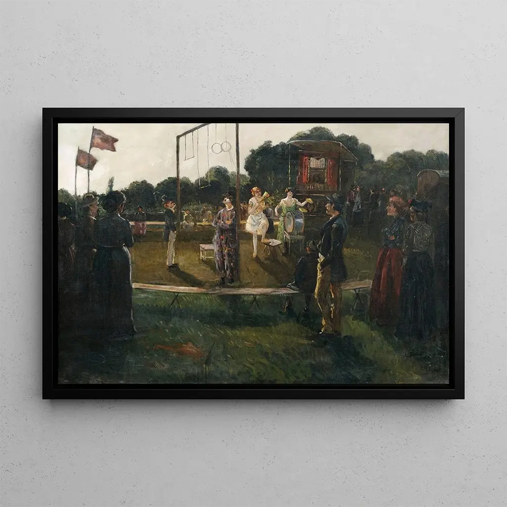 Wanderzirkus is an artist whose work is rooted in the tradition of the circus and spectacle, a recurring theme in 20th-century art. Influenced by avant-garde movements, he uses bright colors and bold shapes to depict the magic of the circus. His work, created at a time when the circus was at its peak, reflects the importance of this popular art form in the culture of his era. Wanderzirkus manages to immortalize the ephemeral, transforming fleeting moments into timeless paintings that continue to fascinate.