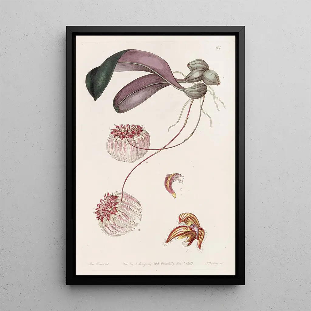 Cirrhopetalum with Gold Edge: An Enchanting Floral Dance The art print Cirrhopetalum with Gold Edge by Sydenham Edwards evokes a delicate floral elegance that captivates the eye. The vibrant colors and meticulous details of the petals create an atmosphere of lightness and grace. The watercolor technique, executed with mastery, captures the transparency of the flowers while playing with shadows and highlights. Each element of the composition seems to dance under a gentle breeze, inviting the viewer to immerse themselves in a world of natural beauty. This art print is a true ode to flora, where every shade of color tells a story. Sydenham Edwards: A Pioneer of Botanical Illustration Sydenham Edwards, active in the early 19th century, is recognized as one of the most influential artists in the field of botanical illustration. Trained at the Royal Academy, he mastered combining scientific accuracy with artistic sensitivity, making his works both informative and aesthetic. His illustrations were often published in botanical books, contributing to the knowledge of exotic plants of his time. Edwards was influenced by the botanical discoveries of his era, which enriched his style and approach. His work has left a lasting mark in the worlds of art and science. A Decorative Acquisition with Multiple Assets The art print of Cirrhopetalum with Gold Edge is a decorative piece that harmoniously fits into various spaces, whether in a living room, office, or bedroom. Its faithful print quality and aesthetic appeal make it an ideal choice for those wishing to add a touch of nature to their interior. This art print, with its vibrant colors and refined design, draws the eye and sparks conversations. By choosing this canvas, you opt for a piece that not only enhances your space but also evokes the fleeting beauty of nature.