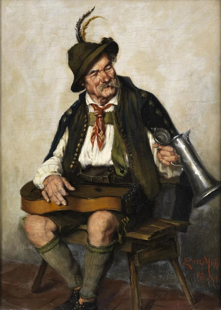 Painting Player with a Lyre and Beer Mug - Ernst Müller | Art print