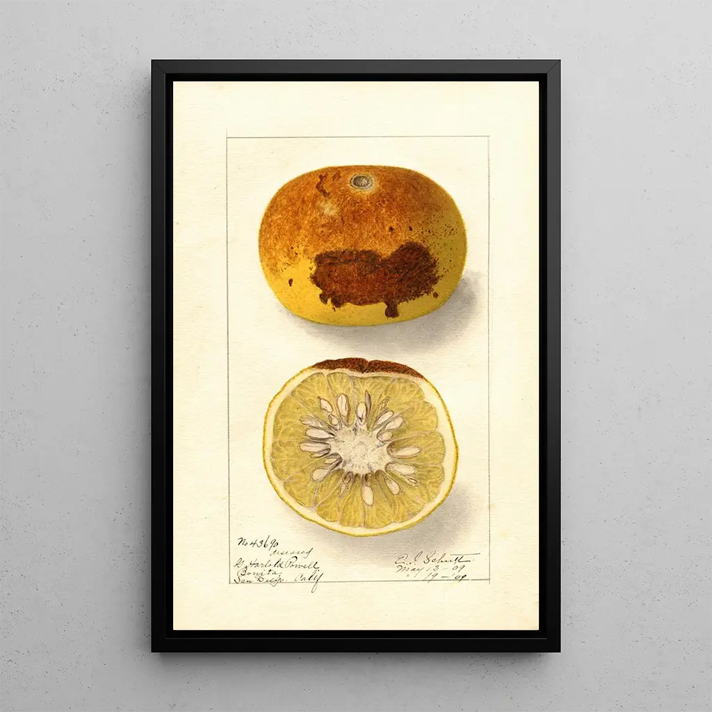 Ellen Isham Schutt, active at the end of the 19th century and the beginning of the 20th century, is recognized for her work in the field of botanical art. Influenced by the naturalist movement, she mastered capturing the beauty of plants and fruits with remarkable precision. Her work stands out for its attention to detail and scientific approach, while maintaining an aesthetic dimension. Schutt helped popularize botanical art as a form of artistic expression, and her creations continue to inspire art and nature enthusiasts. Her passion for citrus fruits, in particular, is highlighted in this art print.