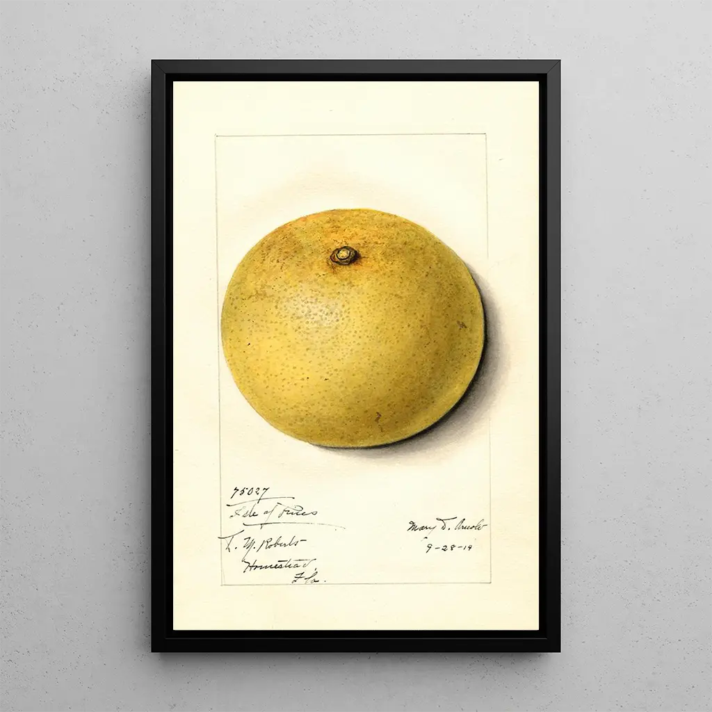 Citrus paradisi Isle of Pines : a celebration of tropical nature In this vibrant artwork, Mary Daisy Arnold transports us to the Isle of Pines, where citrus fruits flourish under a radiant sun. The composition is a true festival of colors, with shades of lush green and bursts of yellow and orange that evoke the freshness of the fruits. The artist's technique, blending watercolor and gouache, gives the canvas a lightness and luminosity that captivate the eye. The atmosphere is both joyful and soothing, inviting the viewer to immerse themselves in a world where nature reigns supreme. Mary Daisy Arnold : a pioneer of the botanical movement Mary Daisy Arnold, active in the early 20th century, is recognized for her unique approach to botanical painting. Influenced by the artistic currents of her time, she mastered the balance between scientific accuracy and artistic sensitivity. Her works, often inspired by tropical flora, reflect a fascination with biodiversity. Arnold helped popularize the depiction of exotic plants in art, while highlighting the importance of conservation. Her legacy endures, and her paintings, such as this art print of Citrus paradisi Isle of Pines, continue to inspire art and botany enthusiasts. A decorative acquisition with multiple assets The art print of Citrus paradisi Isle of Pines is an ideal choice to enhance your interior, whether in a living room, office, or bedroom. Its vibrant color palette adds a touch of freshness and vitality to any space. The quality of the print ensures remarkable fidelity to the details of the original work, allowing you to fully enjoy the beauty of this canvas. By choosing this art print, you add not only a decorative piece but also a conversation starter that evokes the richness of nature and botanical art.