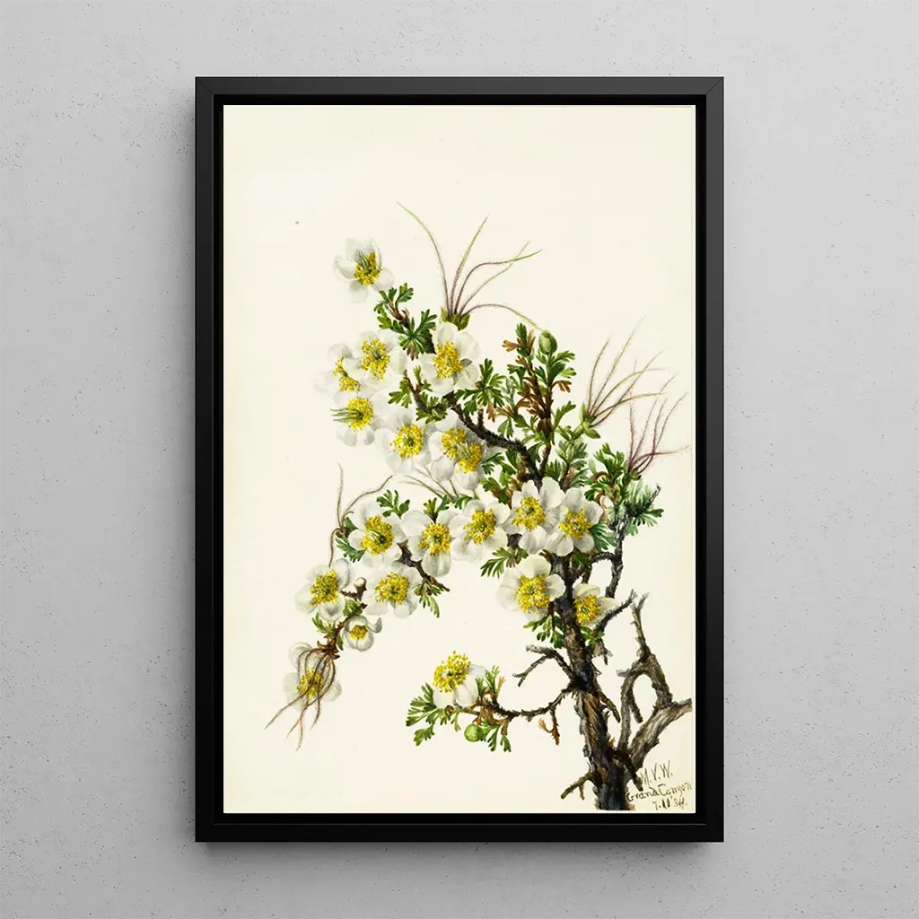 Cliffrose Cowania stanshuriana : an ode to wild beauty The art print of Cliffrose Cowania stanshuriana, created by Mary Vaux Walcott, immerses us in a floral universe of infinite delicacy. The soft and natural hues of this piece evoke the serenity of American landscapes. The watercolor technique used by Walcott captures the light and texture of the petals, creating an almost ethereal atmosphere. Every detail, from the leaves to the flowers, is rendered with precision that invites contemplation. This canvas, both scientific and artistic, reminds us of the fragile beauty of nature. Mary Vaux Walcott : a pioneer of botanical art Mary Vaux Walcott, active in the early 20th century, is recognized for her essential role in American botanical art. Influenced by the naturalist movement, she dedicated her life to the study and representation of native plants. Her works, often published in scientific publications, testify to her passion for nature and her desire to raise public awareness about environmental preservation. As a member of the American Botanical Society, Walcott successfully combined art and science, leaving a lasting legacy that continues to inspire artists and naturalists. A decorative acquisition with multiple advantages The art print of Cliffrose Cowania stanshuriana is an ideal decorative piece to bring a touch of nature into your interior. Whether in a living room, an office, or a bedroom, this canvas integrates harmoniously into various decorating styles, from classic to contemporary. Its printing quality guarantees exceptional fidelity to the colors and details of the original artwork, while offering undeniable aesthetic appeal. By choosing this art print, you opt for a piece that not only beautifies your space but also evokes reflection on the beauty of flora.
