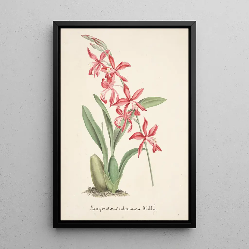 The artist of the art print Collection of Orchidaceae Pl02 remains unknown, but their work is part of a long tradition of floral art, which experienced particular growth in past centuries. Orchids, often considered symbols of beauty and rarity, have been a source of inspiration for many artists. This canvas, with its refined style, demonstrates sensitivity to nature and technical mastery that characterize floral works of the period. The anonymity of the artist does not diminish the value of this piece, which continues to captivate art enthusiasts.