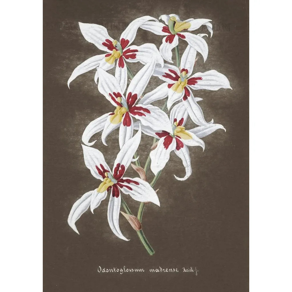 The art print Collection of Orchid Pl64 evokes a world of delicacy and refinement. The vibrant and varied colors of the orchids, ranging from shades of pink to flashes of yellow, create a lively and joyful atmosphere. The technique used, likely watercolor or lithography, captures the lightness and transparency of the petals. Each flower seems to dance under the light, inviting the viewer to immerse themselves in a lush garden. This piece, both realistic and poetic, transports us to a universe where nature expresses itself with grace and elegance.
