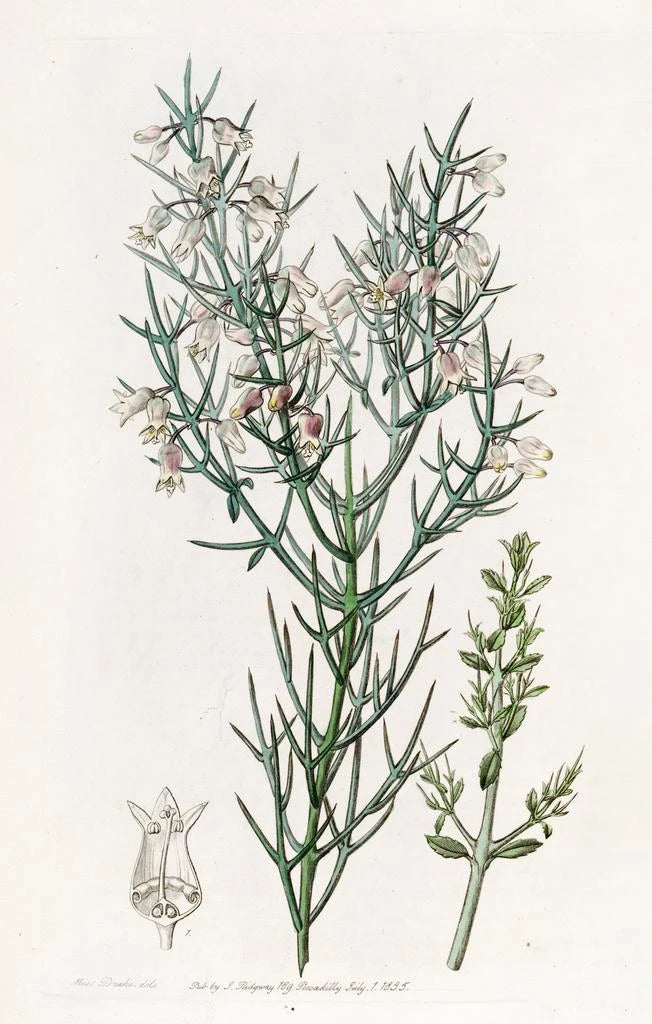 Sydenham Edwards, actif au début du XIXe siècle, est reconnu comme l'un des premiers illustrateurs botaniques de son temps. Formé à la botanique et à l'art, il a su allier ces deux passions pour créer des œuvres d'une précision remarquable. Ses illustrations, dont la Colletia hérissée, témoignent de l'engouement de l'époque pour la classification des plantes et la découverte de nouvelles espèces. Influencé par les voyages d'exploration et les avancées scientifiques, Edwards a contribué à la diffusion des connaissances botaniques à travers ses œuvres. Son héritage perdure, faisant de lui une figure incontournable de l'histoire de l'art botanique.