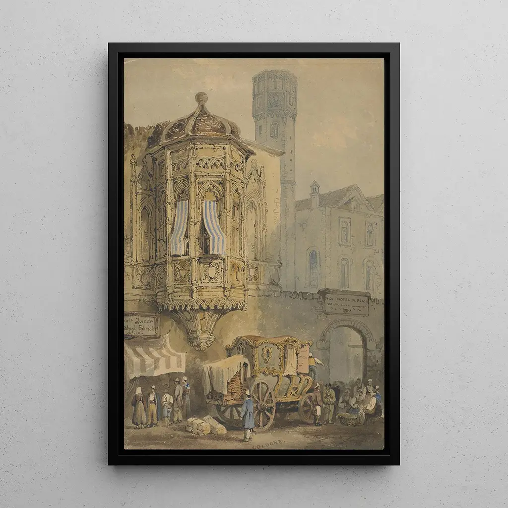Cologne: A Romantic Vision of Architecture The art print of Cologne by Samuel Prout immerses us in an atmosphere filled with romance and mystery. This artwork, with its shades of gray and blue, evokes the majesty of the Cologne Cathedral, whose spires reach towards the sky. The watercolor technique, used with finesse, captures the light reflecting off the ancient stones, creating an ambiance that is both serene and majestic. The carefully rendered architectural details invite the viewer to an attentive contemplation, revealing the timeless beauty of this piece. Samuel Prout: a master of architectural landscape Samuel Prout, active in the 19th century, is renowned for his ability to immortalize urban landscapes and iconic monuments. Influenced by the Romantic movement, he captured the essence of places with a unique sensitivity. Prout traveled across Europe, drawing inspiration from Gothic architecture and picturesque landscapes. His work played a key role in popularizing travel watercolors, offering art enthusiasts a glimpse of the architectural wonders of his time. His contribution to British art is undeniable, and his works continue to inspire contemporary artists. A decorative acquisition with multiple assets The art print of Cologne is a decorative piece that fits perfectly into various spaces, whether in a living room, office, or bedroom. Its print quality and fidelity to the original details make it an ideal choice for art and architecture lovers. By adding this canvas to your decor, you bring a touch of elegance and culture to your interior. The aesthetic appeal of this piece, with its play of light and soft hues, creates a calming and inspiring atmosphere, making this art print a true asset for your decoration.