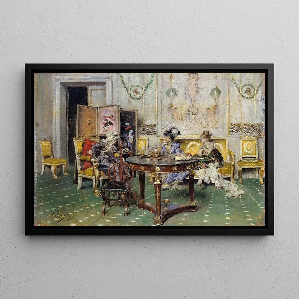 Gossips: a vibrant and elegant scene of everyday life In "Gossips," Giovanni Boldini captures the essence of an era with unmatched mastery. The canvas depicts a lively scene where elegantly dressed characters engage in animated exchanges. The vivid colors and fluid brushstrokes infuse an atmosphere of dynamism and sophistication. The refined details of the costumes and faces reveal meticulous attention to light and shadow, creating a depth that draws the eye. This artwork is a true invitation to immerse oneself in the social universe of the Belle Époque, where each character seems to tell a story. Giovanni Boldini: the portraitist of modern elegance Giovanni Boldini, born in 1842 in Ferrara, is an iconic figure of the Impressionist movement and portraiture at the end of the 19th century. Influenced by great masters such as Manet and Degas, he stands out for his flamboyant style and his ability to capture movement. His works, often centered on high society, testify to a time when elegance and refinement were at their peak. Boldini managed to establish himself in Parisian salons, becoming the portraitist of his era’s celebrities. His artistic legacy endures, making him an essential reference for understanding the aesthetics of his time. A decorative acquisition with multiple assets The art print of "Gossips" is an ideal choice to enhance your interior decor. Whether in a living room, office, or bedroom, this piece adds a touch of sophistication and dynamism. Its reproduction quality guarantees fidelity to the details and colors of the original artwork, allowing you to enjoy Boldini’s art in your living space. The aesthetic appeal of this canvas is sure to inspire admiration from your guests, while creating a warm and welcoming atmosphere.