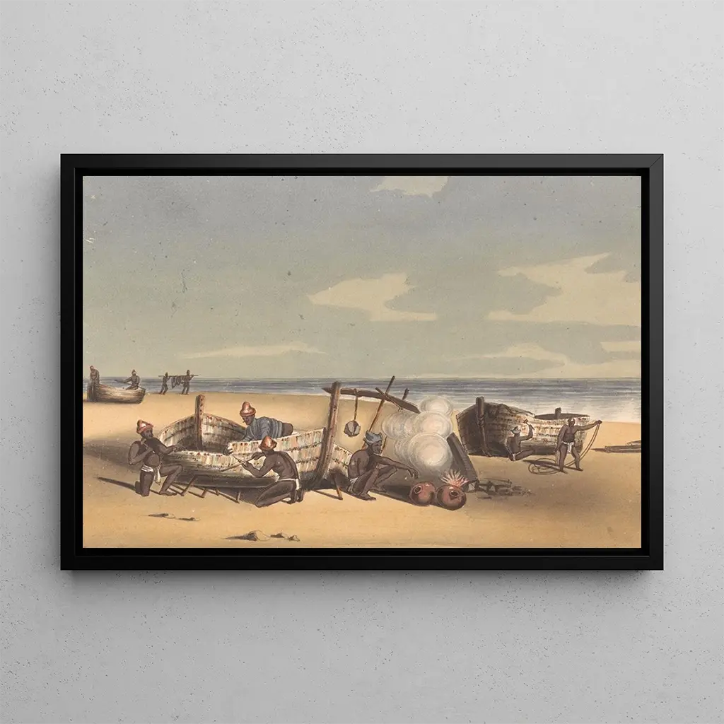 Opting for an art print of "Construction and Repairing Masoola Boats" is a wise choice to enrich your interior. Whether in a living room, office, or bedroom, this artwork adds a touch of authenticity and character. Its quality reproduction guarantees fidelity to the details of the original work, while offering undeniable aesthetic appeal. This art print invites contemplation and daydreaming, turning each glance into a journey toward distant maritime horizons.