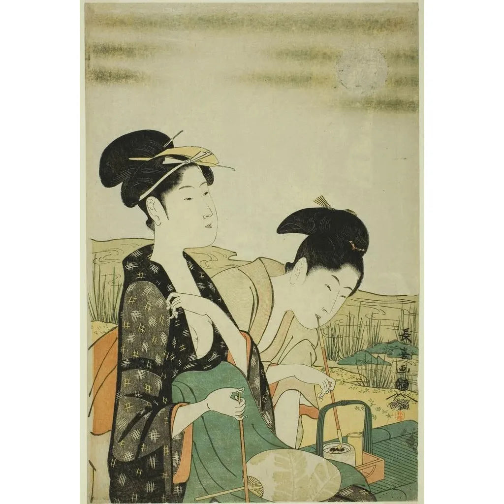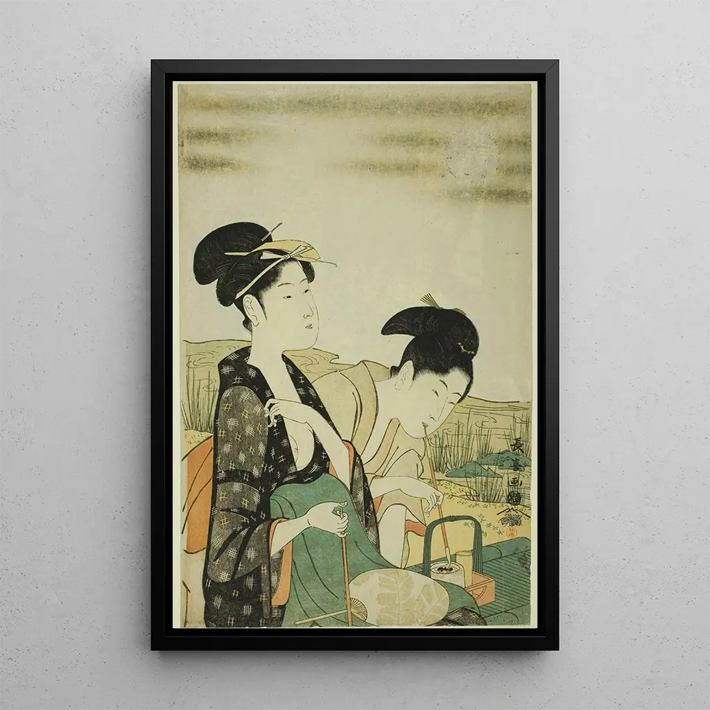 Contemplation of the Moon: a poetic journey under the stars The art print of "Contemplation of the Moon" immerses us in a delicate universe where the silvery light of the moon caresses the faces of the characters. The soft, pastel colors create a serene, almost dreamlike atmosphere, while the Japanese ukiyo-e technique highlights intricate details. Floral motifs and elegant silhouettes of the figures add a touch of grace to this nocturnal scene. Every element seems to invite the viewer to pause and appreciate the fleeting beauty of the night, offering a true invitation to contemplation. Eishsai Chki: the artist at the heart of Japanese ukiyo-e Eishsai Chki is a master of ukiyo-e art print, a style that flourished in Japan during the Edo period. Born in the 18th century, Chki was influenced by the great masters of his time, while developing a personal style distinguished by its finesse and attention to detail. His works capture the beauty of landscapes, scenes of daily life, and portraits of geishas. The significance of Chki lies in his ability to immortalize fleeting moments with a unique sensitivity, making him an essential figure in Japanese art. A decorative piece with multiple virtues The art print of "Contemplation of the Moon" is a decorative piece that will enhance any space, whether a living room, office, or bedroom. Its printing quality guarantees remarkable fidelity to the details of the original work, while offering undeniable aesthetic appeal. This artwork, with its soothing nuances and contemplative atmosphere, creates an environment of tranquility and serenity. By choosing this canvas, you opt for a decoration that not only beautifies but also invites reflection and escape.