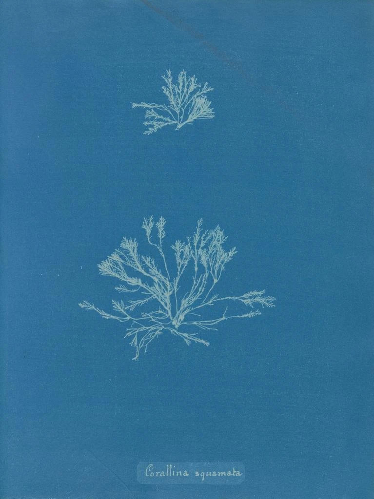 The piece stands out for its unique technique, cyanotype, which uses sunlight to create impressions with striking depth. The coral scales, delicately placed on the paper, seem to come alive, reflecting the complexity and beauty of the marine world. This choice of representation, far from being trivial, highlights Atkins's commitment to nature and her desire to preserve it through art. The blue palette, characteristic of cyanotype, evokes oceanic depths and gives the work a serene yet mysterious atmosphere. Every detail, every nuance, is carefully thought out, inviting the viewer to dive into a universe where science and art intertwine harmoniously.