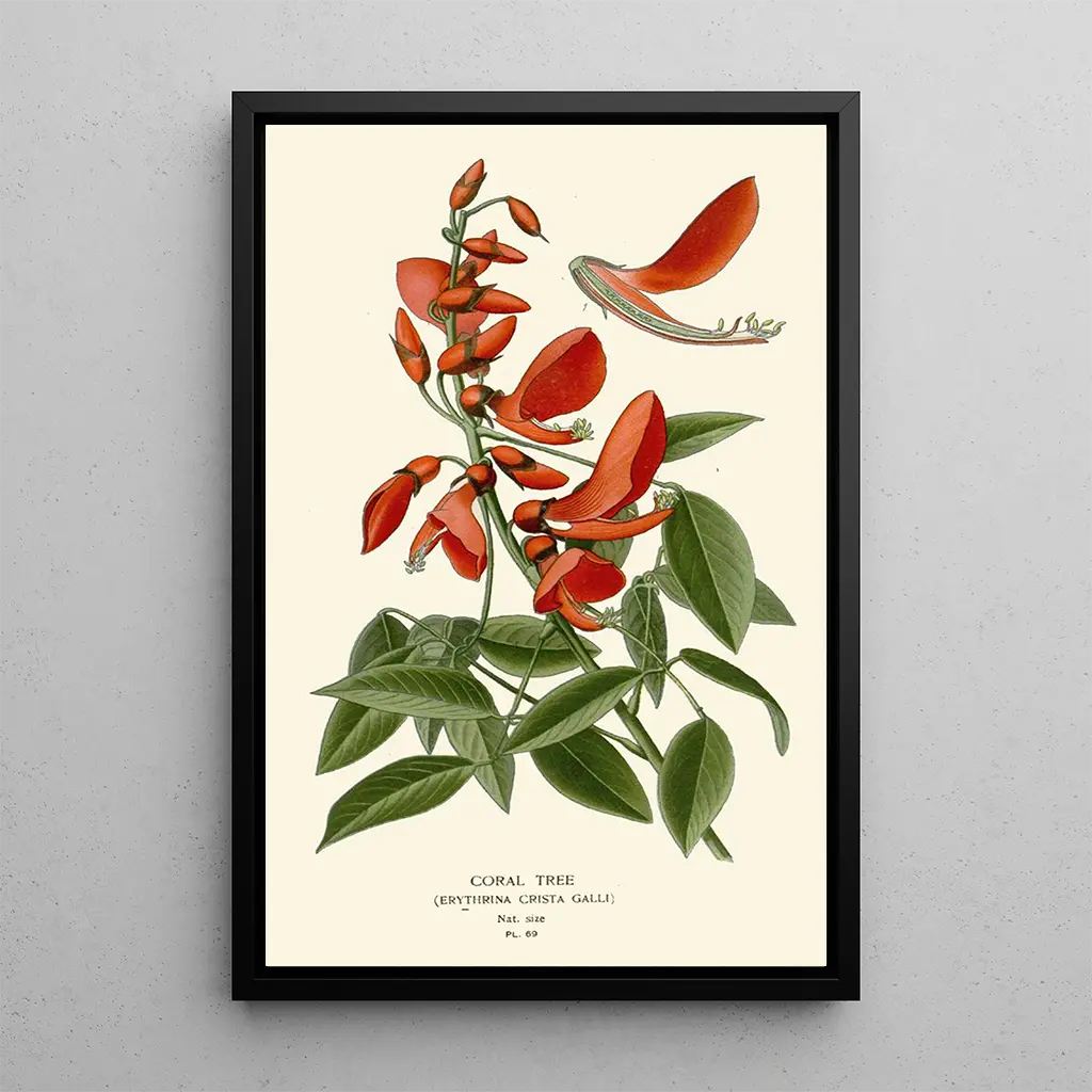 Arbre corail: a dance of colors under the tropics The artwork "Arbre corail" by Edward Step is a vibrant celebration of nature, where dazzling shades of red and green blend harmoniously. The composition, rich in detail, evokes a tropical, almost fairy-tale atmosphere. The branches, adorned with delicate flowers, seem to come alive under the light, creating a play of shadows and highlights that invites contemplation. Step's technique, combining precision and fluidity, allows you to feel the warmth and beauty of this lush landscape, transporting the viewer to a world where nature reigns supreme. Edward Step: a pioneer of botanical art Edward Step, active in the late 19th and early 20th centuries, is recognized for his unique approach to botanical art. Influenced by the naturalist movements of his time, he captured the beauty of plants with scientific accuracy while maintaining an artistic dimension. His works, often published in reference books, testify to his commitment to educating the public about flora. "Arbre corail" fits within this tradition, offering a window into biodiversity and the importance of species conservation. His legacy endures, inspiring many contemporary artists and botanists. A decorative acquisition with multiple advantages Choosing the art print "Arbre corail" by Edward Step means selecting a decorative piece that will add an exotic touch to your interior. Whether in a living room, office, or bedroom, this artwork draws the eye and sparks conversations. Its printing quality guarantees fidelity to the original colors, allowing you to enjoy the full richness of the piece. With its undeniable aesthetic appeal, this canvas integrates perfectly into various décors, from classic to contemporary, while bringing a note of freshness and nature to your living space.