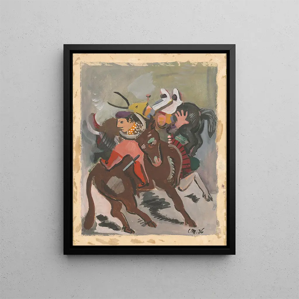 The "Corrida" art print by Cyprian Majernik captures the very essence of passion and drama, embodying a scene where the art of bullfighting blends with a striking aesthetic representation. In this piece, the artist manages to transcend the mere spectacle of the bullfight to create a true ode to life, death, and bravery. The vivid colors and dynamic movements of the characters immerse the viewer in a universe where each brushstroke tells a story, and where the palpable tension between the matador and the bull is reflected in the faces of the protagonists. Far from being a simple depiction, this work invites reflection on the complexity of human emotions and the tragic beauty of struggle.