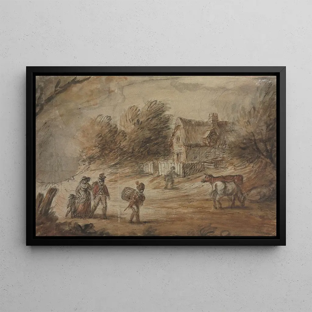 Henry William Bunbury was a British artist of the 18th century, famous for his caricatures and genre scenes. His work reflects a time when satirical art was gaining prominence, influenced by the political and social events of his era. Bunbury skillfully captured the customs of English society with a critical eye, while maintaining a lightness in his style. "Scene of a countryside with soldiers" perfectly illustrates his talent for depicting moments of military life with humor and finesse, making him an important figure in British art.