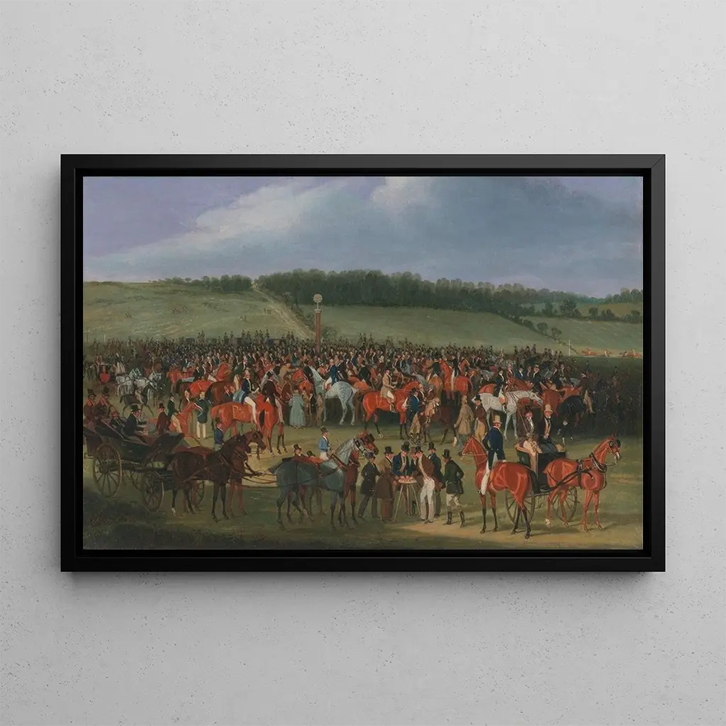 The art print of Courses d'Epsom, the betting post transports us to the heart of a vibrant scene filled with the excitement of horse racing. James Pollard, with his undeniable talent, captures the intensity of the event, where spectators, dressed in their finest attire, eagerly await the start of the race. The vivid and dynamic colors, blending the green of the lawns and the blue of the sky, create an electric atmosphere. Pollard's technique, which combines realism and movement, brings each character and horse to life, making palpable the adrenaline in the air. This work is a true celebration of the passion for racing, a moment frozen in time.