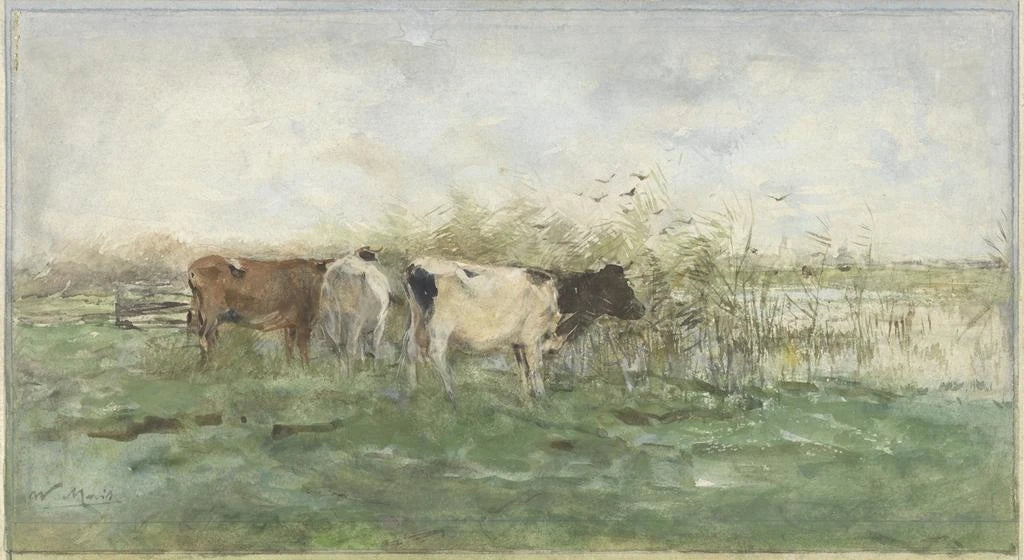Willem Maris, born in 1844 in the Netherlands, is recognized as one of the pioneers of animal painting. Influenced by the realist movement, he specialized in depicting wildlife and landscapes, capturing the beauty of rural scenes. Maris established himself in the art world thanks to his unique style, combining precision and sensitivity. His works, often imbued with light and color, testify to a meticulous observation of nature. During the late 19th century, he contributed to renewing the genre of landscape painting by incorporating lively elements that animate his compositions.