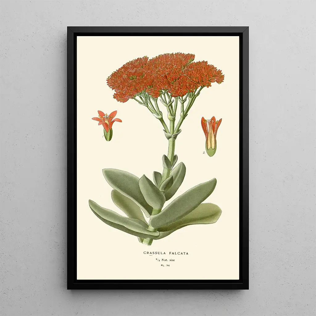 The art print of the Crassula falcata is a wise decorative choice for those wishing to bring a touch of nature into their interior. Whether in an office, a living room, or a bedroom, this canvas adapts to all styles of decoration, adding a note of freshness and vitality. Its printing quality ensures exceptional fidelity to the colors and details of the original artwork, offering undeniable aesthetic appeal. By choosing this art print, you select a piece that enriches your space while celebrating the beauty of nature, creating a calming and inspiring atmosphere.
