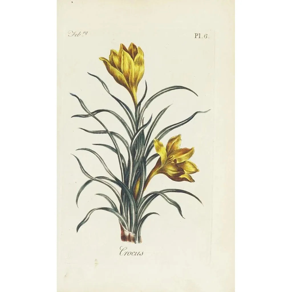The art print of the Crocus by Carington Bowles evokes the freshness of spring, where flowers bloom brightly under the sun's rays. The vivid colors of the crocuses, ranging from violet to yellow, illuminate the canvas and infuse a revitalizing energy. Bowles's engraving technique captures every detail with remarkable precision, highlighting the ephemeral beauty of these flowers. The atmosphere conveyed by this artwork is both joyful and soothing, inviting contemplation and wonder at nature.