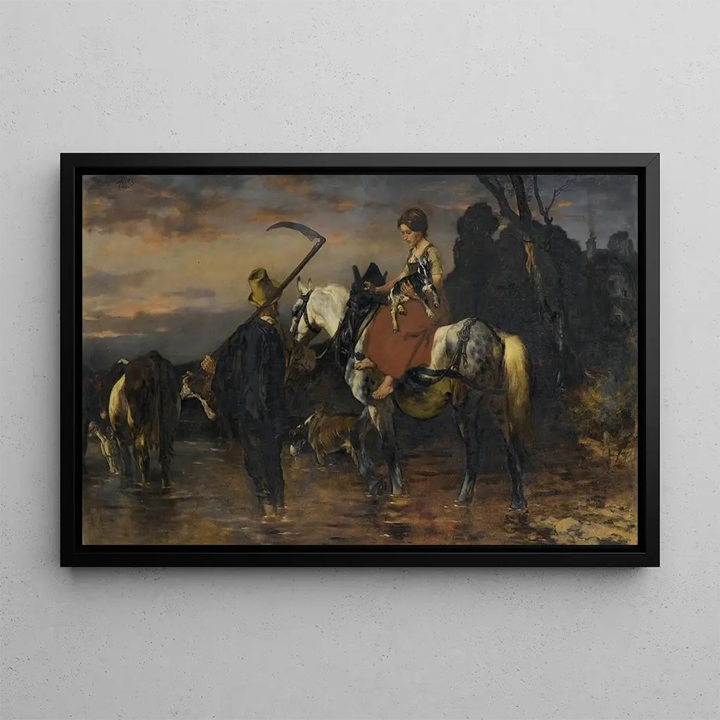 Traversée de la rivière: a journey into the heart of the wilderness The art print "Traversée de la rivière" by Wilhelm von Diez evokes a bucolic scene where harmony between man and nature is delicately revealed. The soft colors and shades of green and blue create a calming atmosphere, while the oil on canvas technique allows capturing the light in an almost magical way. The characters, in full action, seem to engage in an adventure, reinforcing the idea of communion with the surrounding landscape. This piece invites the viewer to escape and contemplate the beauty of natural scenery. Wilhelm von Diez: a master of German Romanticism Wilhelm von Diez, active in the 19th century, was a German painter whose work is part of the Romantic movement. Influenced by landscapes and themes of rural life, he was able to capture scenes filled with poetry and sensitivity. His career was marked by a constant search for authenticity, aiming to depict the beauty of the natural world while incorporating narrative elements. The Romantic period, characterized by an emphasis on emotions and nature, profoundly influenced his style, making him an essential artist of his time. A decorative acquisition with multiple assets The art print of "Traversée de la rivière" is an ideal decorative choice to enhance your interior, whether in a living room, office, or bedroom. Its print quality and fidelity to the original work guarantee undeniable aesthetic appeal. By integrating this art print into your decor, you bring a touch of serenity and nature to your space, while sparking interest and contemplation. This piece is not only a decorative element but also an invitation to dreaming and escapism.