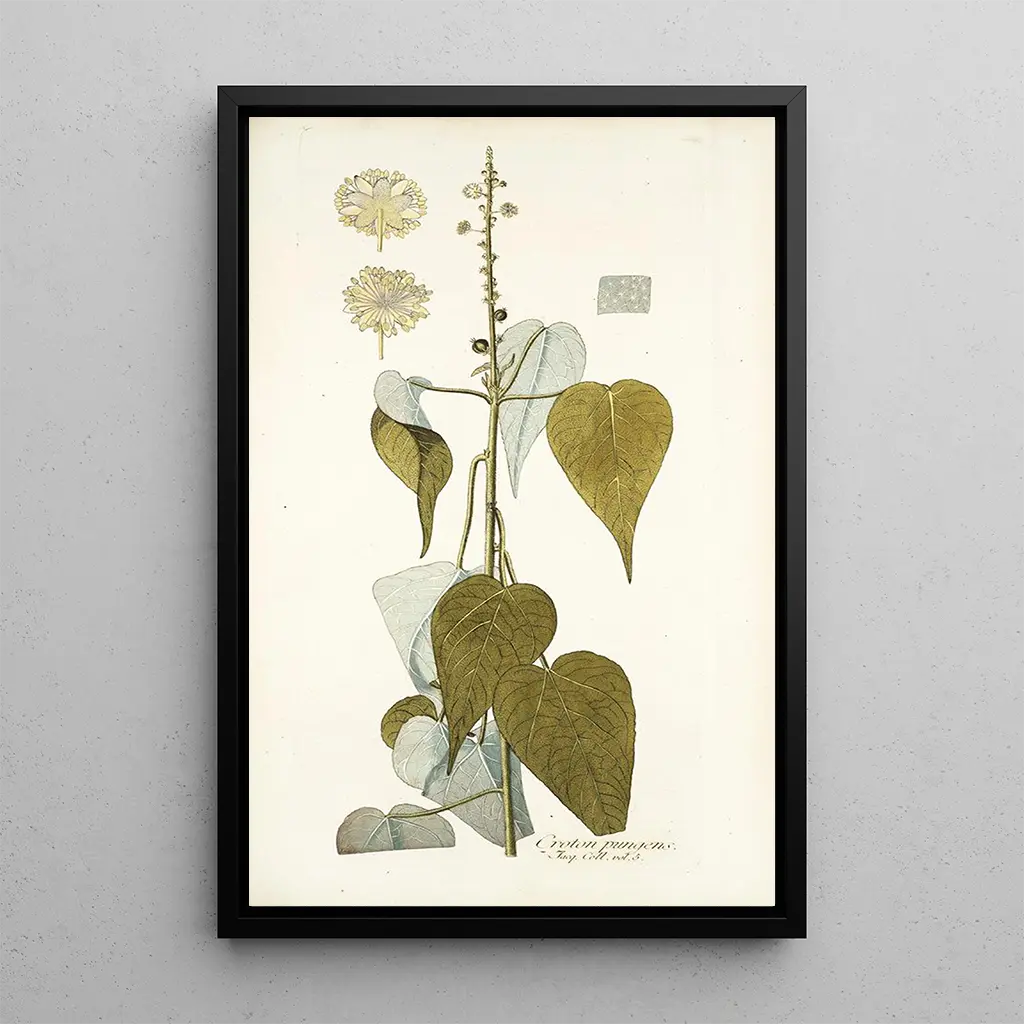 The art print of Croton pungens is an ideal decorative piece to enhance your interior, whether in a living room, office, or bedroom. Its print quality and fidelity to the original work guarantee undeniable aesthetic appeal. This artwork evokes the beauty of nature while adding a touch of exoticism to your decor. By choosing this canvas, you opt for a piece that not only beautifies your space but also tells a fascinating story about botany and art. Let yourself be seduced by this reproduction, a true invitation to contemplation.