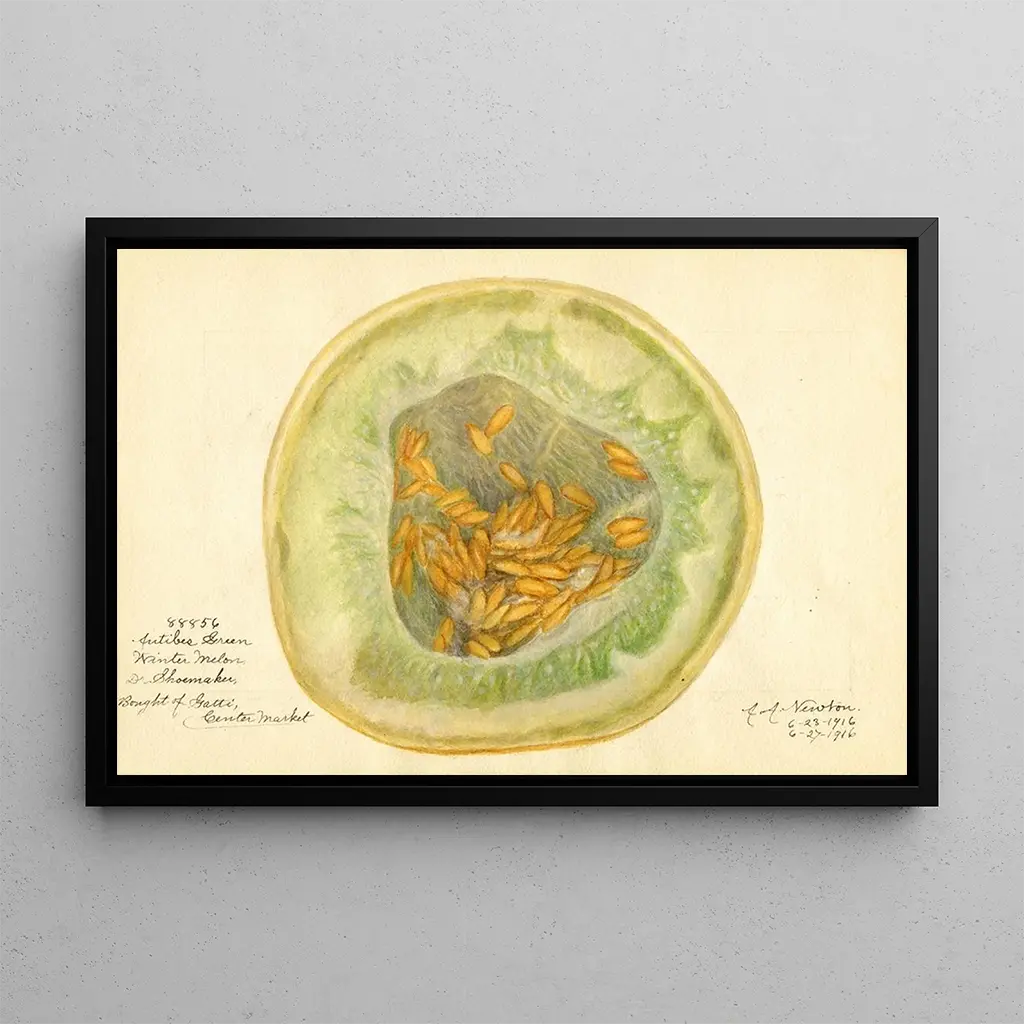 The art print of "Cucumis melo Antibes Green" is a perfect addition to any interior decor, whether in a kitchen, living room, or workspace. Its printing quality ensures exceptional fidelity to the colors and details of the original artwork, bringing a touch of freshness to your environment. This piece, with its aesthetic appeal, is ideal for creating a friendly and warm atmosphere. By choosing this canvas, you invite nature into your space while adding a note of elegance and timeless charm to your decor.