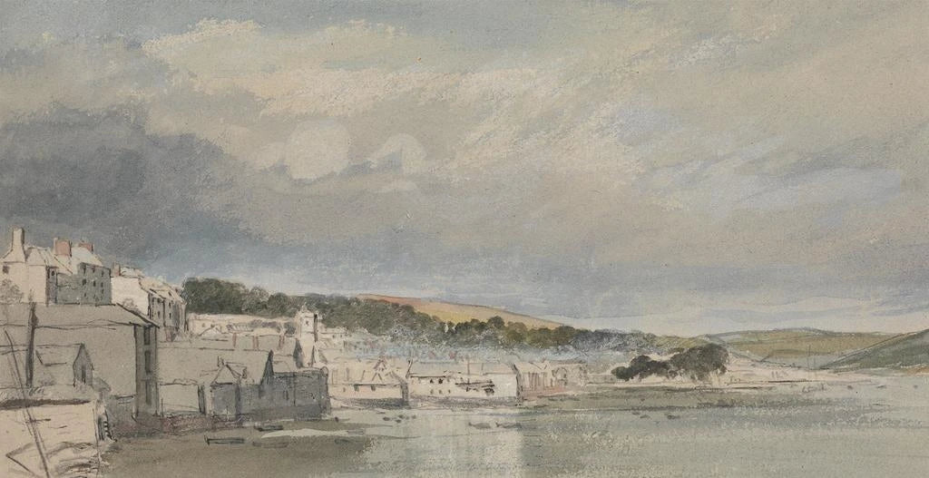In this work, William Collins transports us to Dartmouth, a picturesque port where light plays with the reflections on the water. The shades of blue and green blend harmoniously, creating a soothing atmosphere. The technique of oil painting allows for capturing the details of the white sails of the boats, while offering a rich texture that draws the eye. The delicately painted clouds add a poetic dimension to this maritime scene, inviting the viewer to immerse themselves in the tranquility of the landscape.