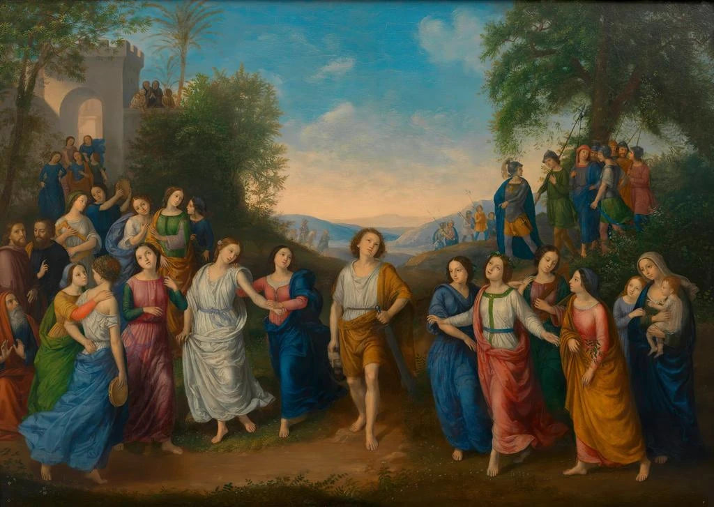 David von den Jungfrauen begrüßt: a scene imbued with serenity