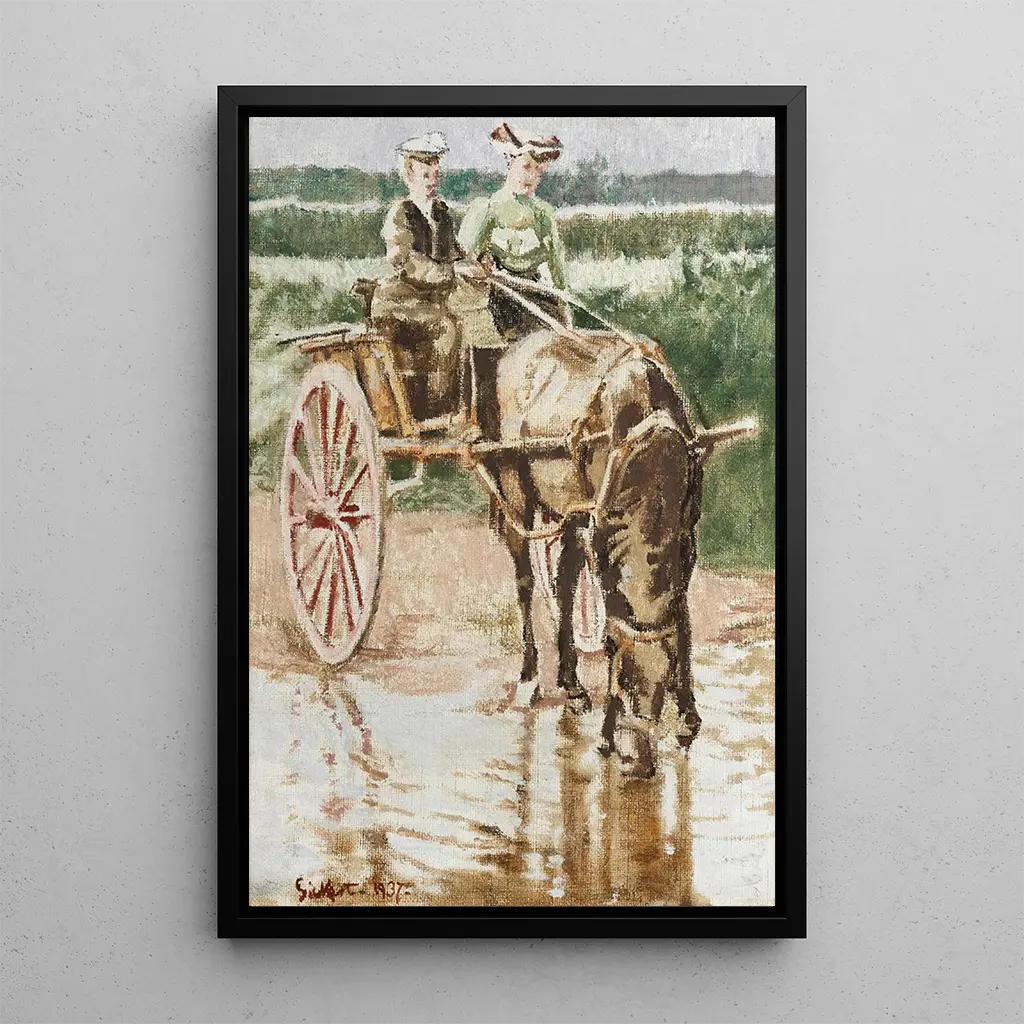 "Jour de congé de la première actrice" is a captivating art print by Walter Richard Sickert, capturing a moment of rest in an actress's life. The gentle colors and harmonious composition evoke an atmosphere of serenity and intimacy. The artist skillfully plays with light, highlighting the delicate features of the subject's face while creating a play of shadows that adds depth to the scene. This piece, both simple and evocative, invites us to contemplate life behind the spotlight, revealing a moment of vulnerability and tranquility. Walter Richard Sickert: the artist at the heart of modernity Walter Richard Sickert, born in 1860, is an iconic figure of the British impressionist movement. His career spans several decades, during which he established himself as an innovator in the field of art print. Influenced by the great French masters, he developed a unique style blending realism and impressionism. Sickert was also a keen observer of modern life, capturing scenes from theater and urban life with particular sensitivity. His work continues to inspire and fascinate, demonstrating his importance in art history. A decorative acquisition with multiple assets The art print of "Jour de congé de la première actrice" is a refined decorative choice for any room in your home. Whether in a living room, office, or bedroom, this piece adds a touch of elegance and culture. Its faithful print quality and delicate nuances make it a captivating work that will delight your guests. By incorporating this canvas into your decor, you create a space that is both artistic and welcoming, where every glance is drawn into the beauty of the moment frozen by Sickert.