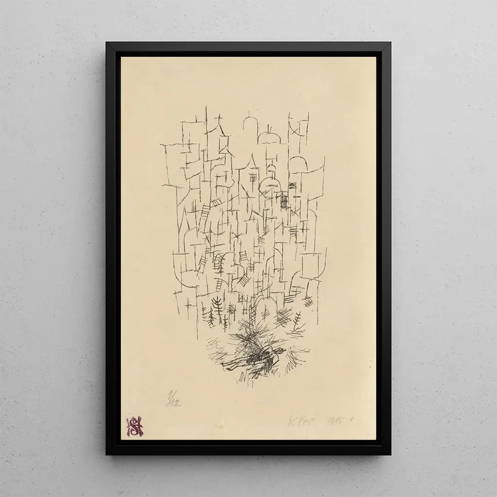 Paul Klee, born in 1879 in Switzerland, is one of the emblematic figures of modern art. His artistic journey is marked by diverse influences, ranging from symbolism to expressionism, including cubism. Klee was a member of the Bauhaus, where he developed theories on color and form. "The Death for the Idea" fits into a period when the artist explores philosophical and psychological concepts, translating his reflections into powerful images. His work, rich in symbolism, continues to question and inspire generations of artists and art lovers.