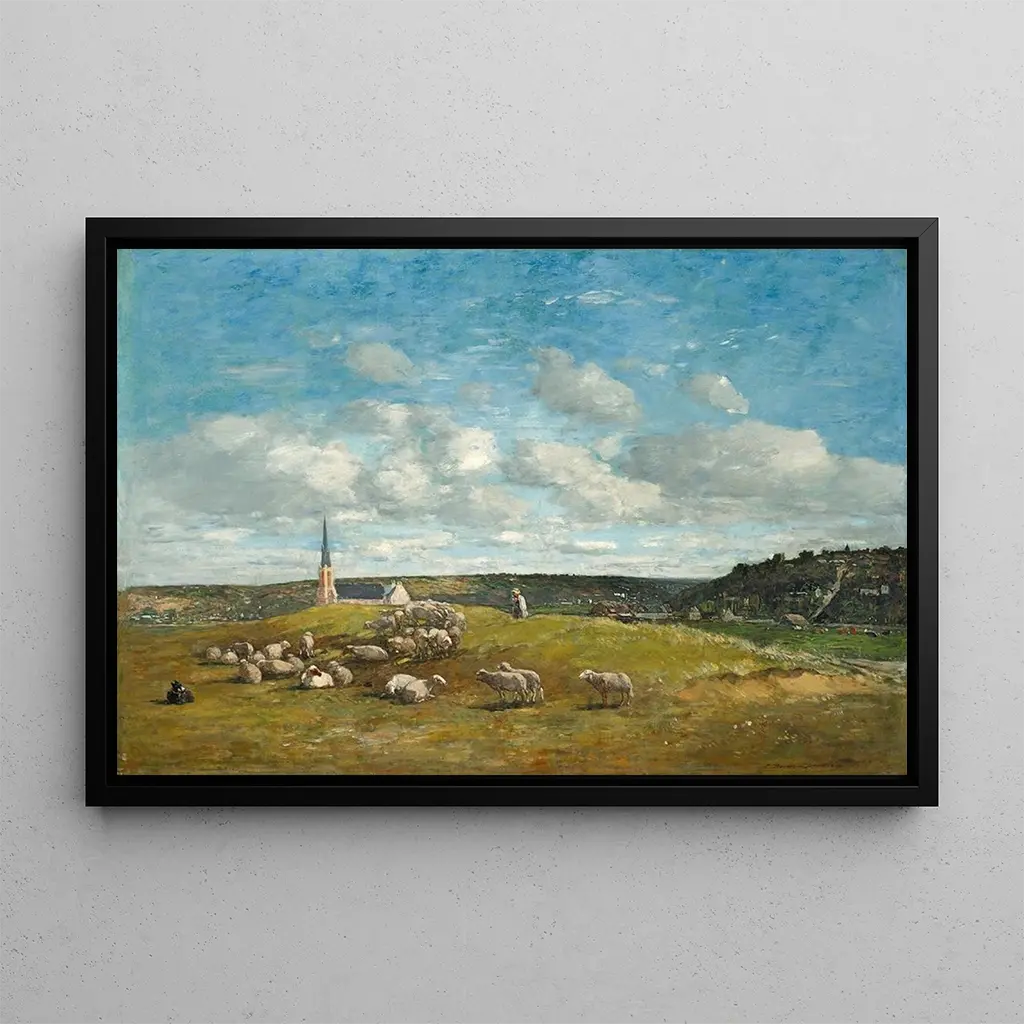 Landscape near Deauville: a bucolic outdoor escape The painting "Landscape near Deauville" by Eugène Boudin evokes a peaceful and luminous atmosphere. The shades of green and blue blend harmoniously, creating a scene where the sea and sky meet in a delicate dance. Boudin's impressionist technique, characterized by quick brushstrokes and light touches, brings this natural scene to life. The artwork invites contemplation, transporting the viewer to the Norman shores, where the fresh wind and gentle sound of the waves seem almost tangible. Eugène Boudin: the precursor of Impressionism Eugène Boudin, born in 1824, is often considered one of the pioneers of Impressionism. Influenced by the marine landscapes of the Normandy coast, he captured the light and atmosphere of his subjects with remarkable finesse. His career was marked by encounters with artists such as Claude Monet, which helped shape his unique style. Boudin played a crucial role in the evolution of plein air painting, paving the way for a new way of seeing and representing the natural world. A decorative acquisition with multiple assets The art print of the "Landscape near Deauville" is an ideal decorative choice to bring a touch of serenity to your interior. Whether in a living room, office, or bedroom, this canvas evokes the beauty of natural landscapes and invites daydreaming. Its printing quality guarantees fidelity to the colors and details of the original work, while offering undeniable aesthetic appeal. By integrating this art print into your decor, you create a warm and inspiring space, where every glance at the artwork recalls the magic of Norman landscapes.