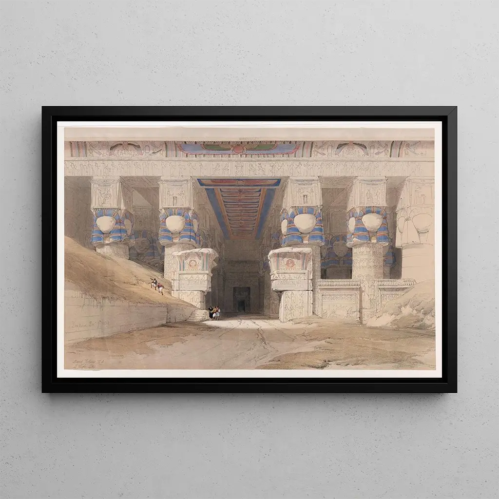 Dendera, Dandara, December 7, 1838: a journey through time and space The art print Dendera, Dandara, December 7, 1838 by David Roberts transports us to the heart of ancient Egypt, where desert landscapes meet the majestic architecture of temples. The warm hues of the sand and the shades of blue in the sky create an atmosphere that is both serene and mystical. The watercolor technique, with its delicate overlays of color, captures the glow of the setting sun, illuminating architectural details with an almost ethereal softness. Each brushstroke reveals the artist's passion for the places he explored, inviting the viewer to contemplate the timeless beauty of these historic sites. David Roberts: a pioneer of artistic travel in the 19th century David Roberts, born in 1796 in Edinburgh, is an iconic figure of British Romanticism. An indefatigable traveler, he journeyed through Europe and the Middle East, documenting his discoveries through works that blend realism and poetry. Influenced by the great masters of his time, Roberts was able to capture the essence of the landscapes and monuments he painted, notably in Egypt. His works, like this art print, testify to an era where exploration and art intertwined, offering viewers a glimpse of the wonders of the world. His legacy endures, inspiring many contemporary artists to explore similar themes. A decorative piece with multiple virtues The art print Dendera, Dandara, December 7, 1838 is a decorative piece that will enhance any interior, whether a living room, office, or bedroom. Its printing quality guarantees vibrant colors and remarkable fidelity to the details of the original, allowing you to fully enjoy David Roberts' work. This artwork not only evokes Egyptian history and culture but also adds a touch of elegance and sophistication to your decor. By choosing this canvas, you opt for a piece that sparks curiosity and admiration, while creating a calming and inspiring atmosphere.