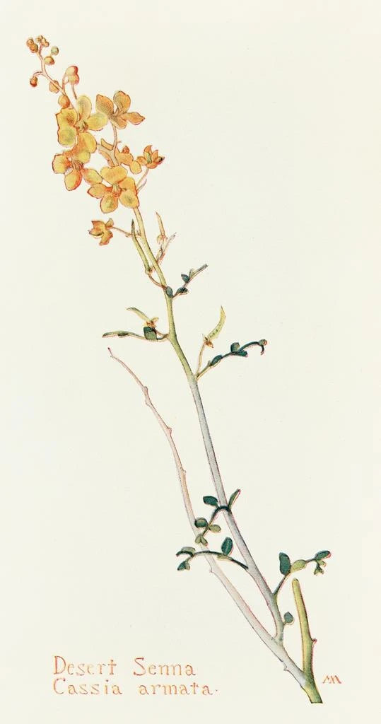 Margaret Armstrong, artist and illustrator, made her mark with her unique approach to floral art. A key figure in the Arts and Crafts movement, she knew how to incorporate elements of nature into her works, while advocating a return to craftsmanship. Her style, influenced by organic motifs and American landscapes, is characterized by a keen attention to detail and an inspiring color palette. "Séné du désert" perfectly illustrates her commitment to faithful representation of flora, making her a pioneer in the field of botanical art.