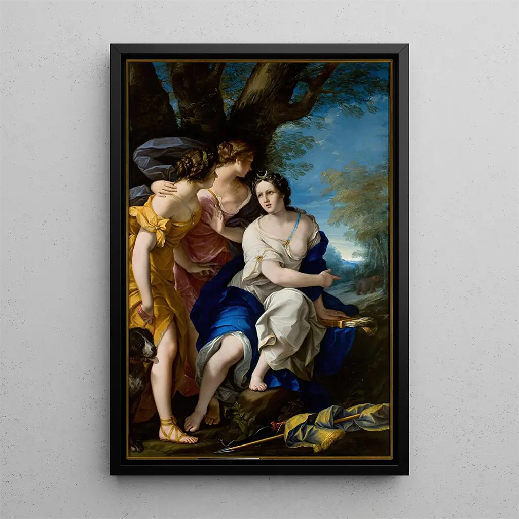 The art print of "Diane with Nymphs" makes an elegant addition to any interior decor, whether in a living room, office, or bedroom. Its quality as an art print allows you to enjoy every detail of the original work, while adding an artistic touch to your space. Thanks to its soft colors and calming atmosphere, this canvas creates a sense of serenity and beauty. By choosing this piece, you offer your interior a decoration that not only enhances your space but also tells a fascinating story of mythology and baroque art.
